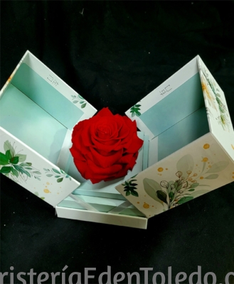La Rosa preservada en caja de nuestra floristería online, es una rosa cuidada y creada para durar para siempre, por eso se le denomina rosa eterna. Las Rosas preservadas son rosas naturales, que se han sometido a un proceso químico, por lo que estas rosas naturales quedan totalmente estancadas en el tiempo, no se estropean, ni marchitan, ni se secan.